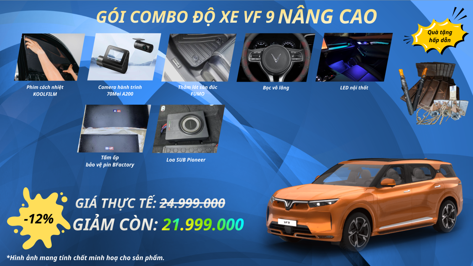 Giá ưu đãi: 21.999.000đ (Tiết kiệm ngay 3 triệu đồng) Bao gồm gói Cơ bản + Loa SUB (bổ sung dải trầm cực sâu cho dàn loa có sẵn) & Ốp bảo vệ pin (vật bất ly thân khi di chuyển đường xá Việt Nam).